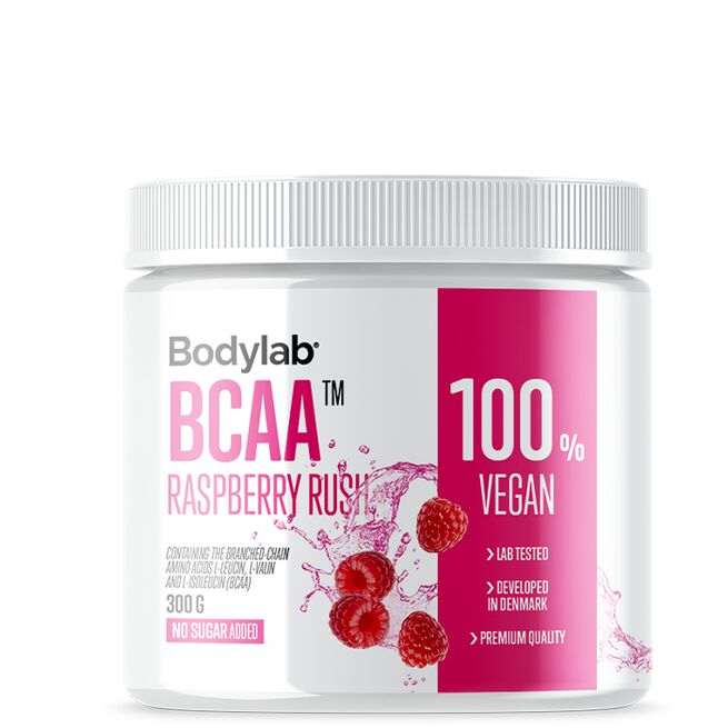 BCAA står för grenade aminosyror. Dessa är leucin, valin och isoleucin. Samtliga är essentiella och de återfinns i hela kroppen och framför allt i muskelvävnad. Bodylab BCAA är en klassisk BCAA med 2:1:1 förhållande. Varje servering ger 2 600 mg ren BCAA. Perfekt som dryck både under och efter träning.