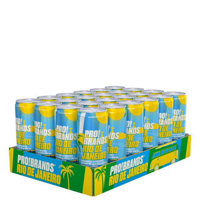 Ingredienser Rio De Janeiro: Vatten, koldioxid, syror (citronsyra, äppelsyra), L[1]leucin, L-isoleucin, L-valin, surhetsreglerande medel (natriumcitrater), naturliga aromer, koffein (0,032%), sötningsmedel (sukralos, acesulfam K), vitaminer (pantotensyra, vitamin B6, biotin, vitamin B12).